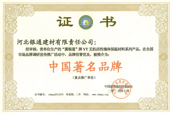 河北銀通建材有限責(zé)任公司,專(zhuān)注于環(huán)保節(jié)能新型保溫材料的研發(fā)和推廣,是北京質(zhì)量檢驗(yàn)認(rèn)證協(xié)會(huì)會(huì)員單位,公司產(chǎn)品YT無(wú)機(jī)活性保溫材料;無(wú)機(jī)輕集料保溫砂漿,無(wú)機(jī)保溫砂漿榮獲住建部:綠色建筑節(jié)能推薦產(chǎn)品證書(shū);中國(guó)著名品牌;全國(guó)保障性住房建設(shè)用材優(yōu)秀供應(yīng)商: